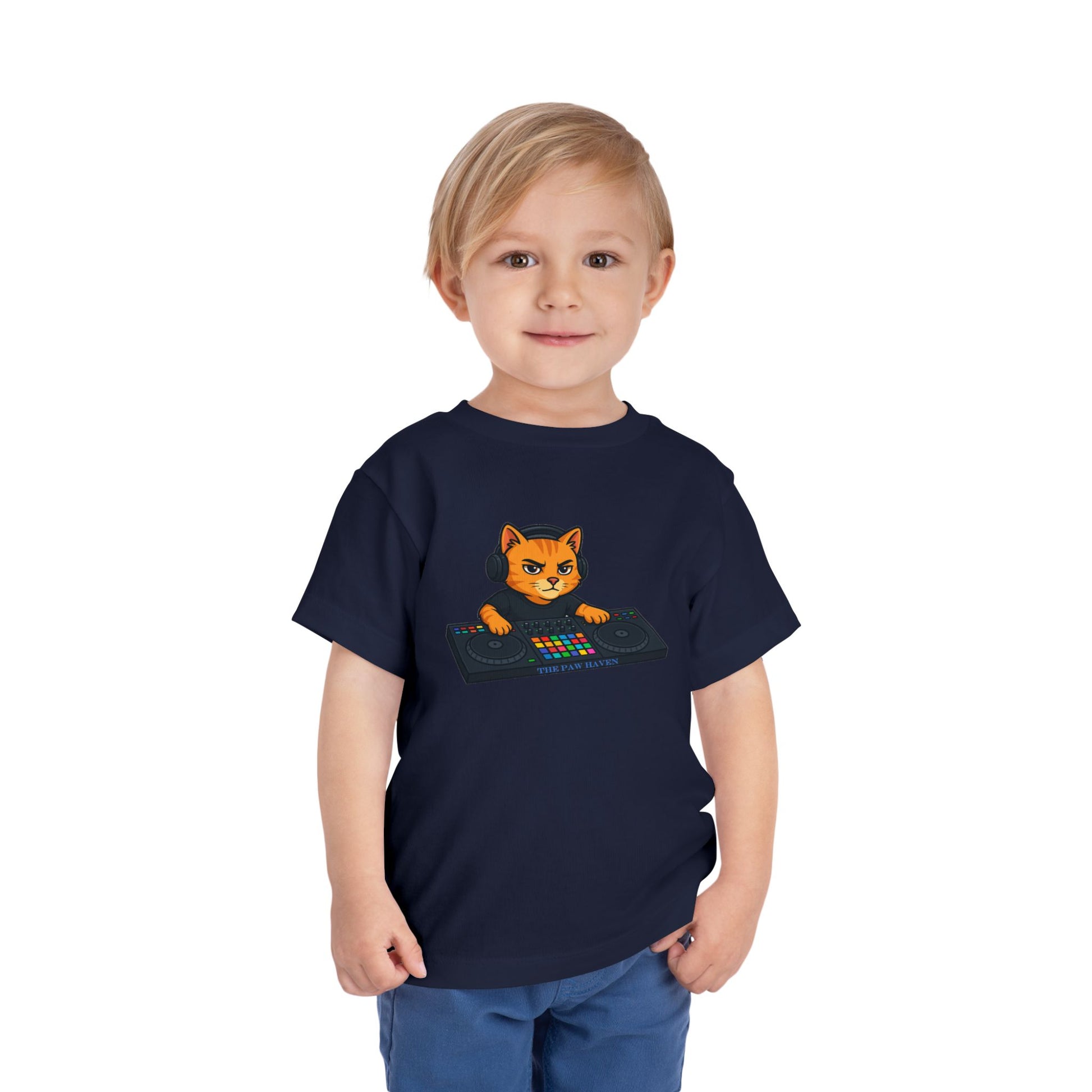 Introducing the perfect blend of comfort and fun, this Toddler Short Sleeve Tee is designed for your little one's adventurous spirit. Featuring a playful cat DJ graphic, this shirt radiates joy and creativity, making it ideal for young music lovers and aspiring artists. Lightweight and made from a soft cotton blend, it ensures a snug yet breathable fit for all-day play. This Tee is perfect for casual outings, playdates, and family gatherings, adding a cheerful touch to any child's wardrobe. Ideal for birthdays, holidays, or just because, this shirt will bring a smile to both kids and parents alike. Get ready for lots of compliments!
