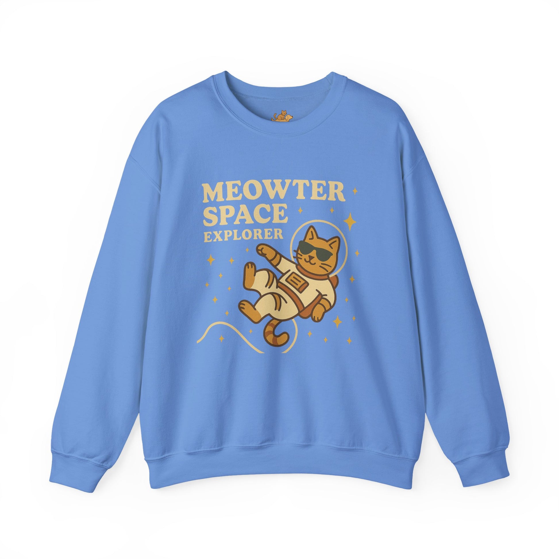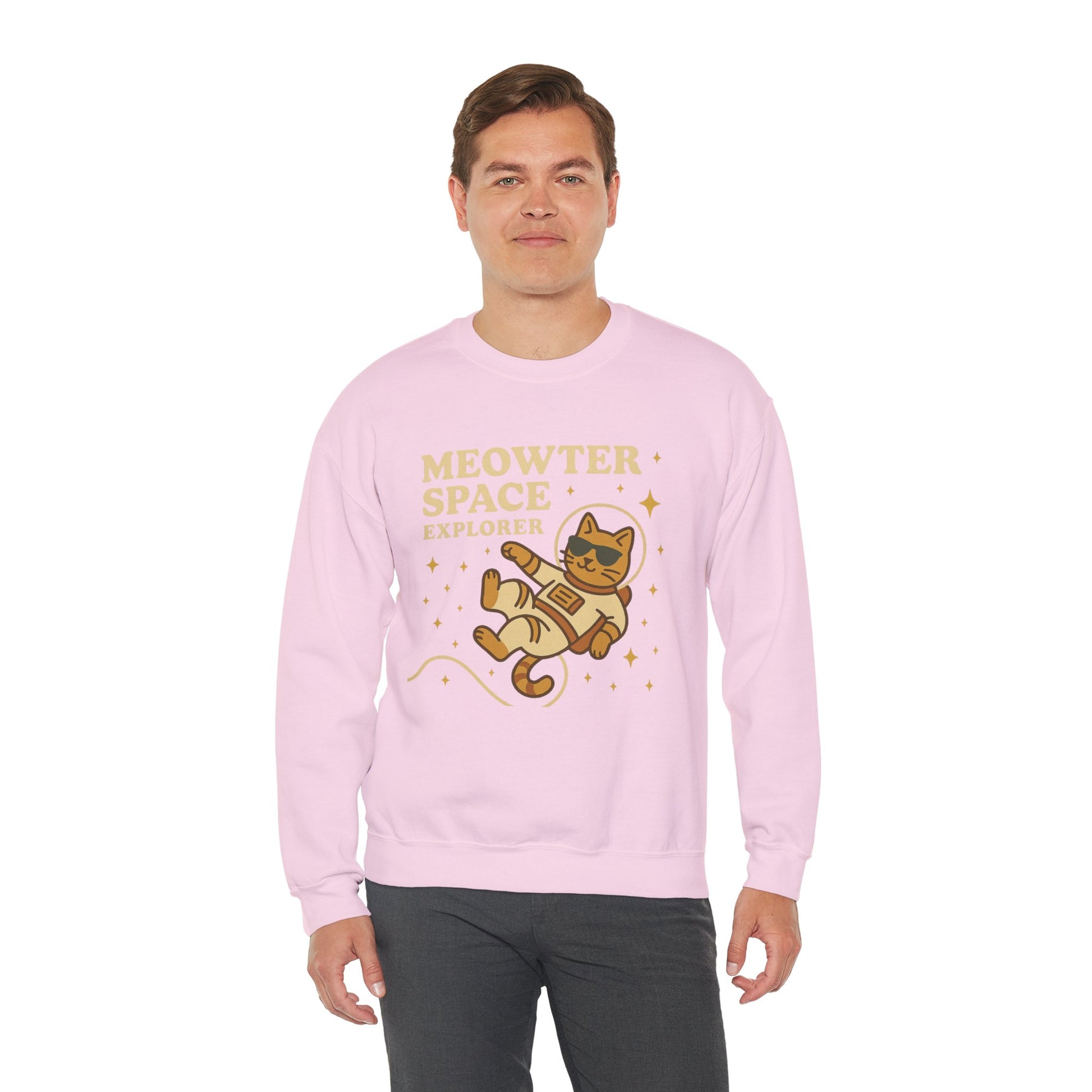 Introducing a fun and quirky crewneck sweatshirt that brings playful energy to your wardrobe. With a unique 'Meowter Space Explorer' design, this sweatshirt radiates creativity and whimsy, making it perfect for cat lovers and space enthusiasts alike. The classic fit and soft cotton-polyester blend offer comfort for day-to-day wear, whether you're lounging at home, running errands, or enjoying a casual day out with friends. Great for gifting during the holidays or special occasions like birthdays or feline-themed events, this sweatshirt is sure to spark joy and laughter. It's more than just a piece of clothing; it's a statement piece that captures your personality and love for cats in a stylish way.
