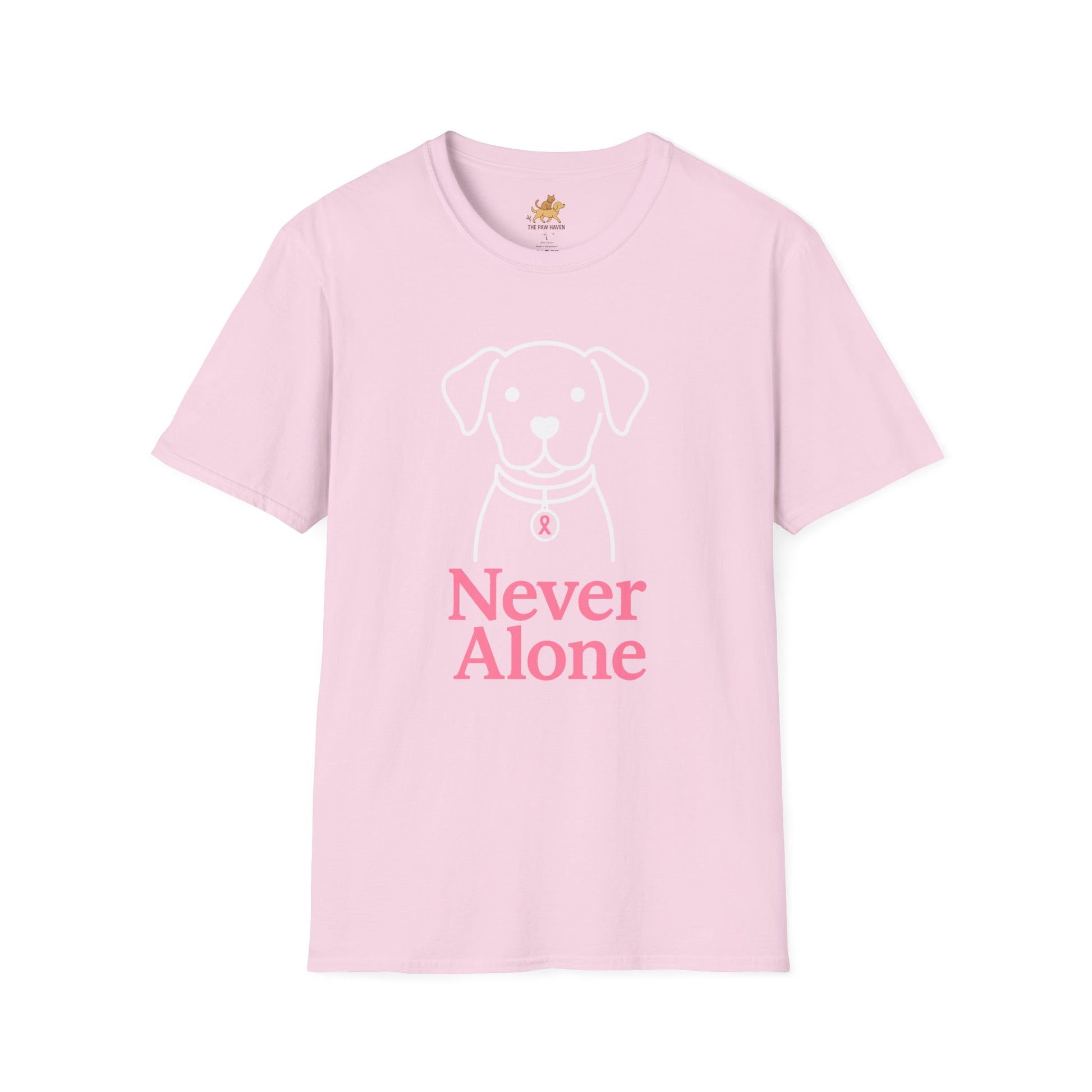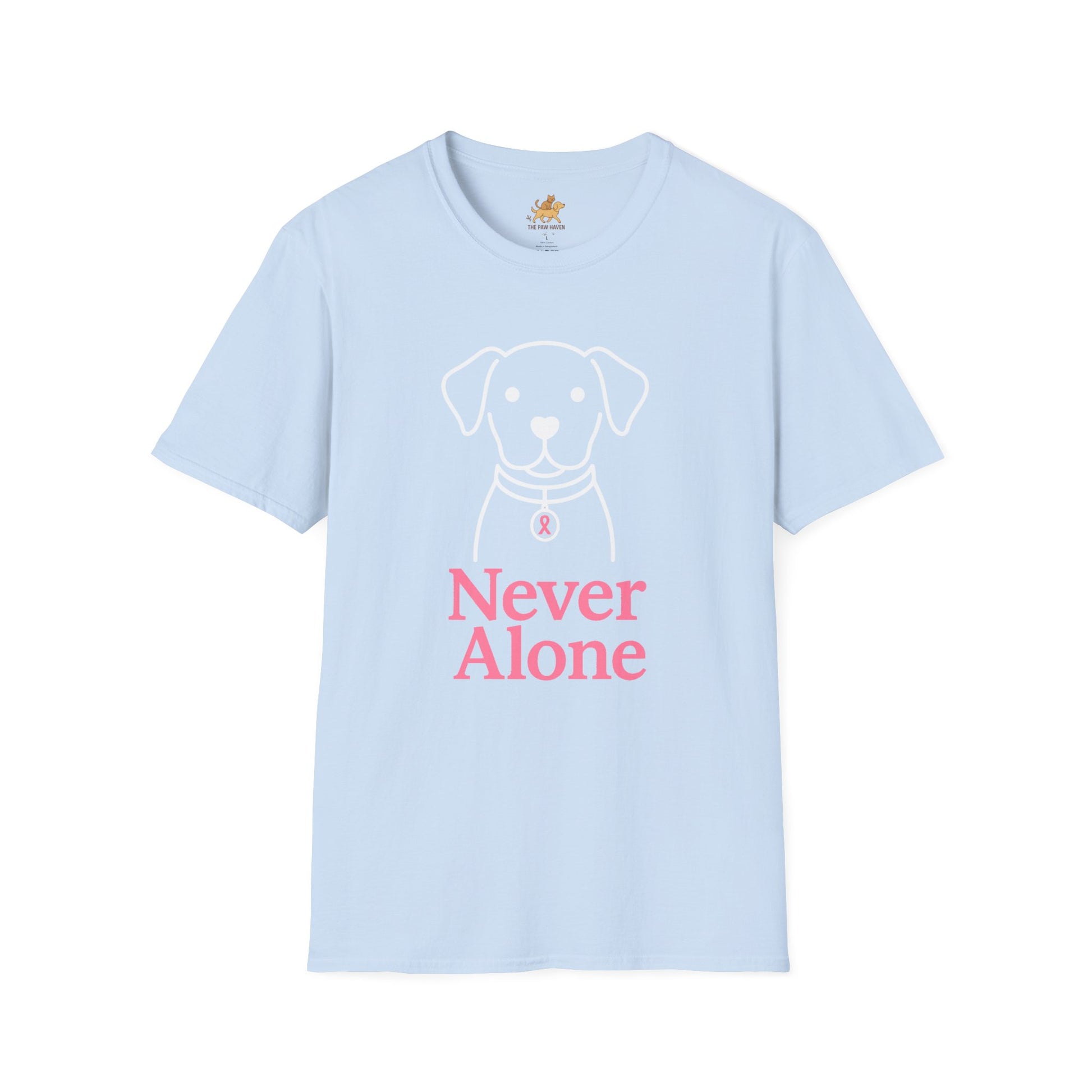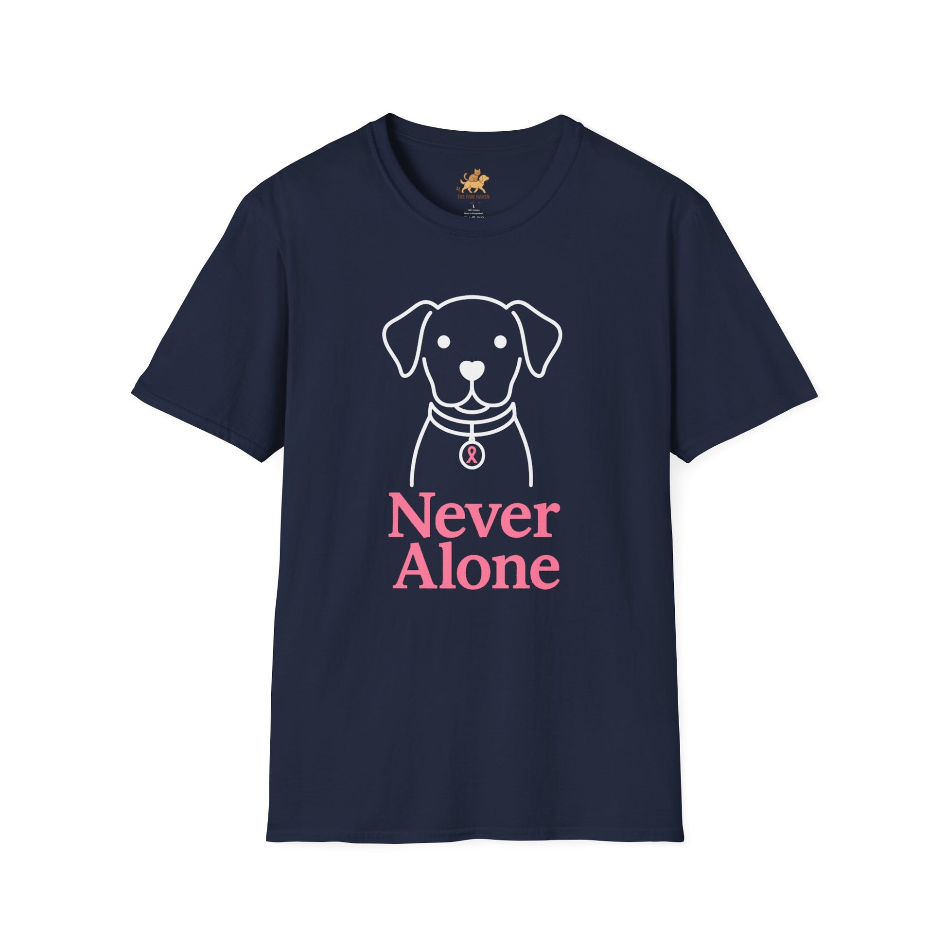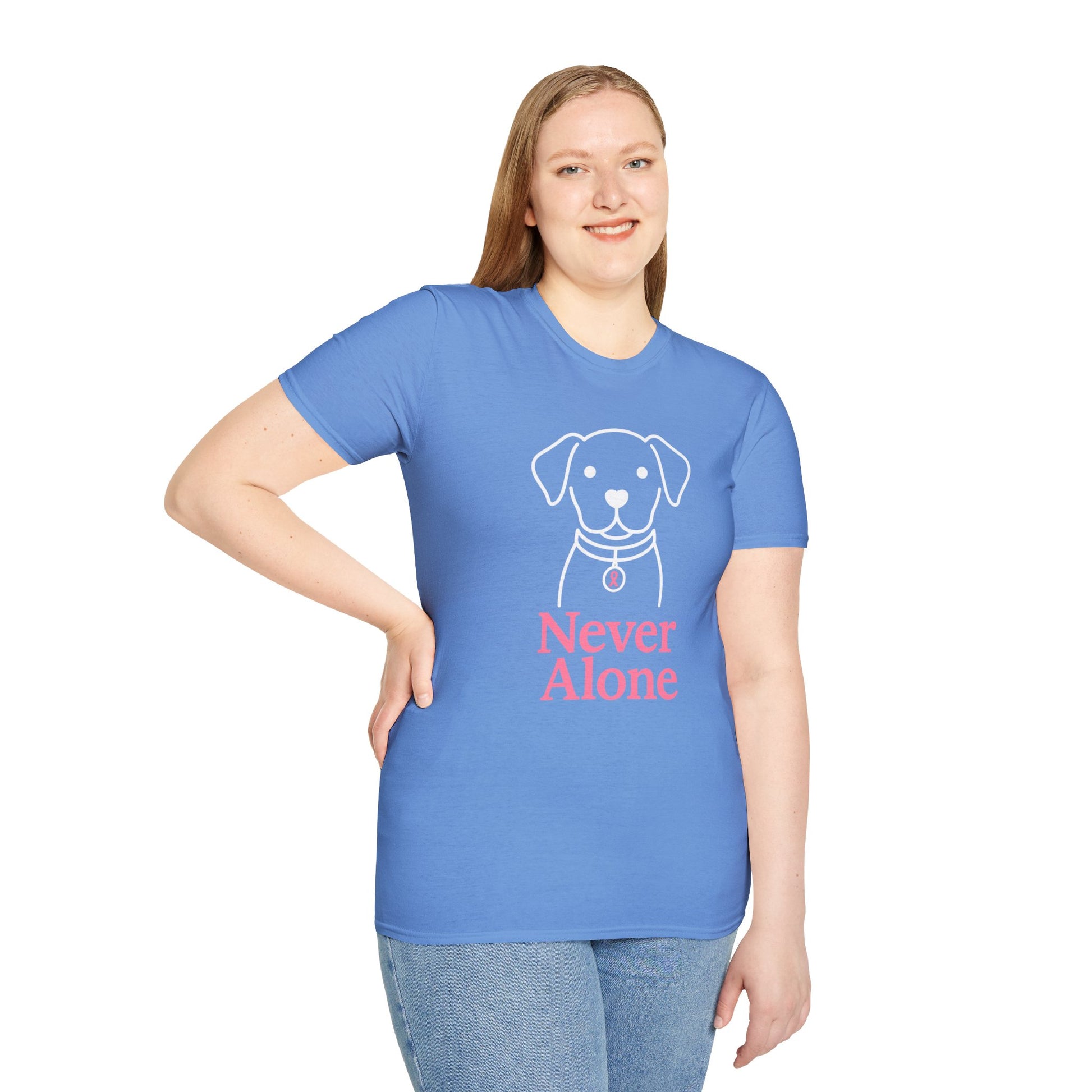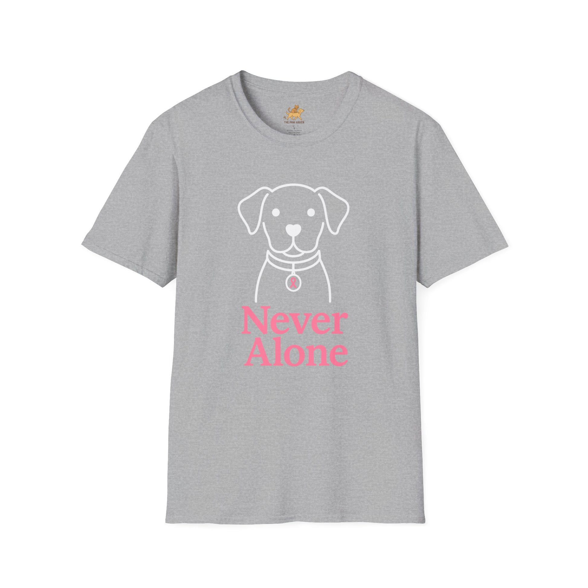 Soft, wearable, and quietly expressive — this tee carries a simple line-drawn dog and the words “Never Alone” in warm pink. It reads like a small, steady promise: the company of a loyal pup, whether you’re pacing city sidewalks or curling up on the couch. The lightweight, ring-spun cotton feels breathable against skin and keeps the print crisp through repeated wear. Subtle enough to layer under a jacket, bold enough to start conversations about companionship and emotional support. Wear it to dog-walking mornings, low-key meetups, or slow evenings at home when you want a gentle reminder that someone’s by your side.